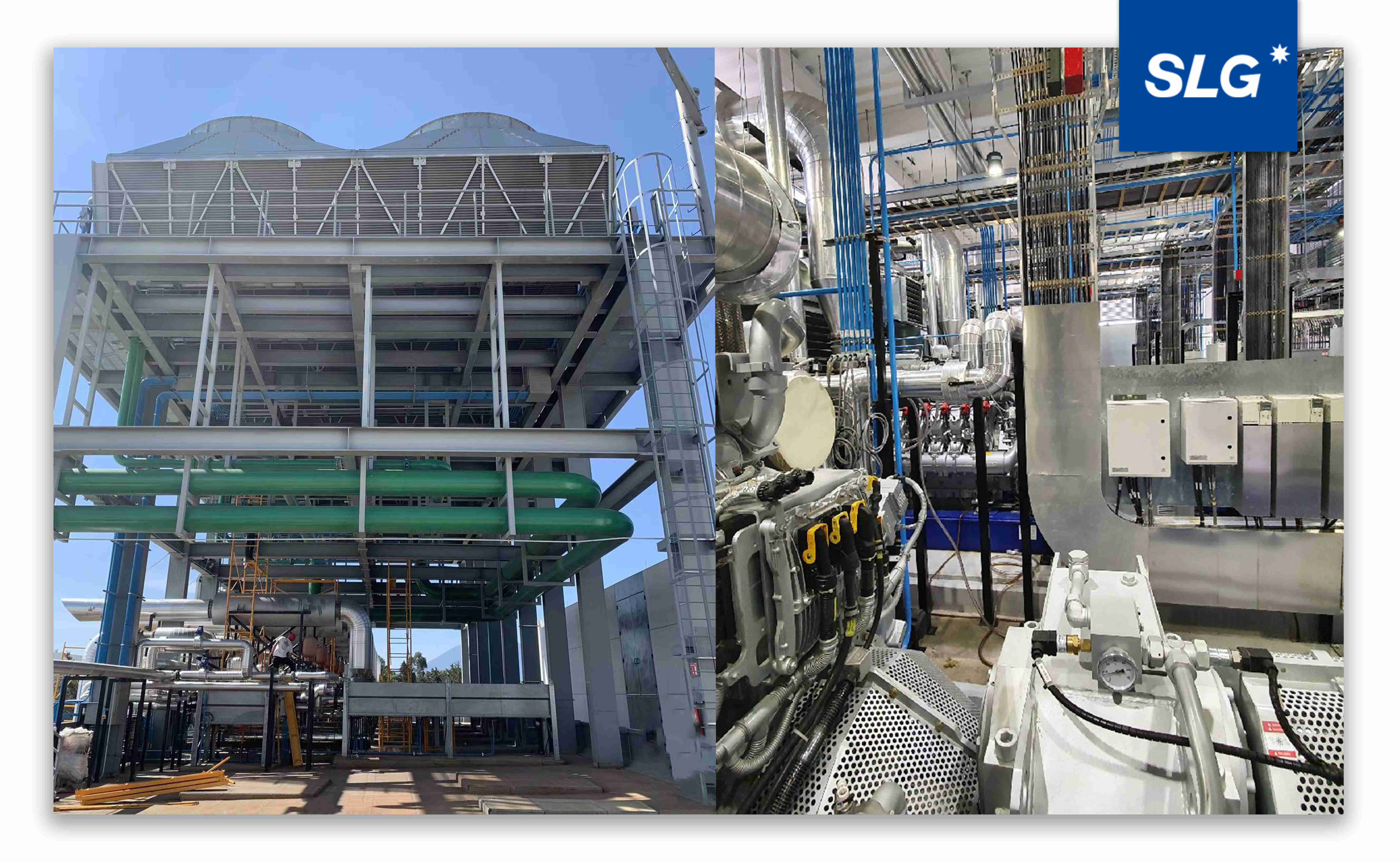 The system adopts gas internal combustion engine power generation. Through waste heat recovery, exhaust gas and jacket water heat are converted into hot water to drive SLG absorption chillers, enabling cascading energy utilization and significantly improving overall efficiency.