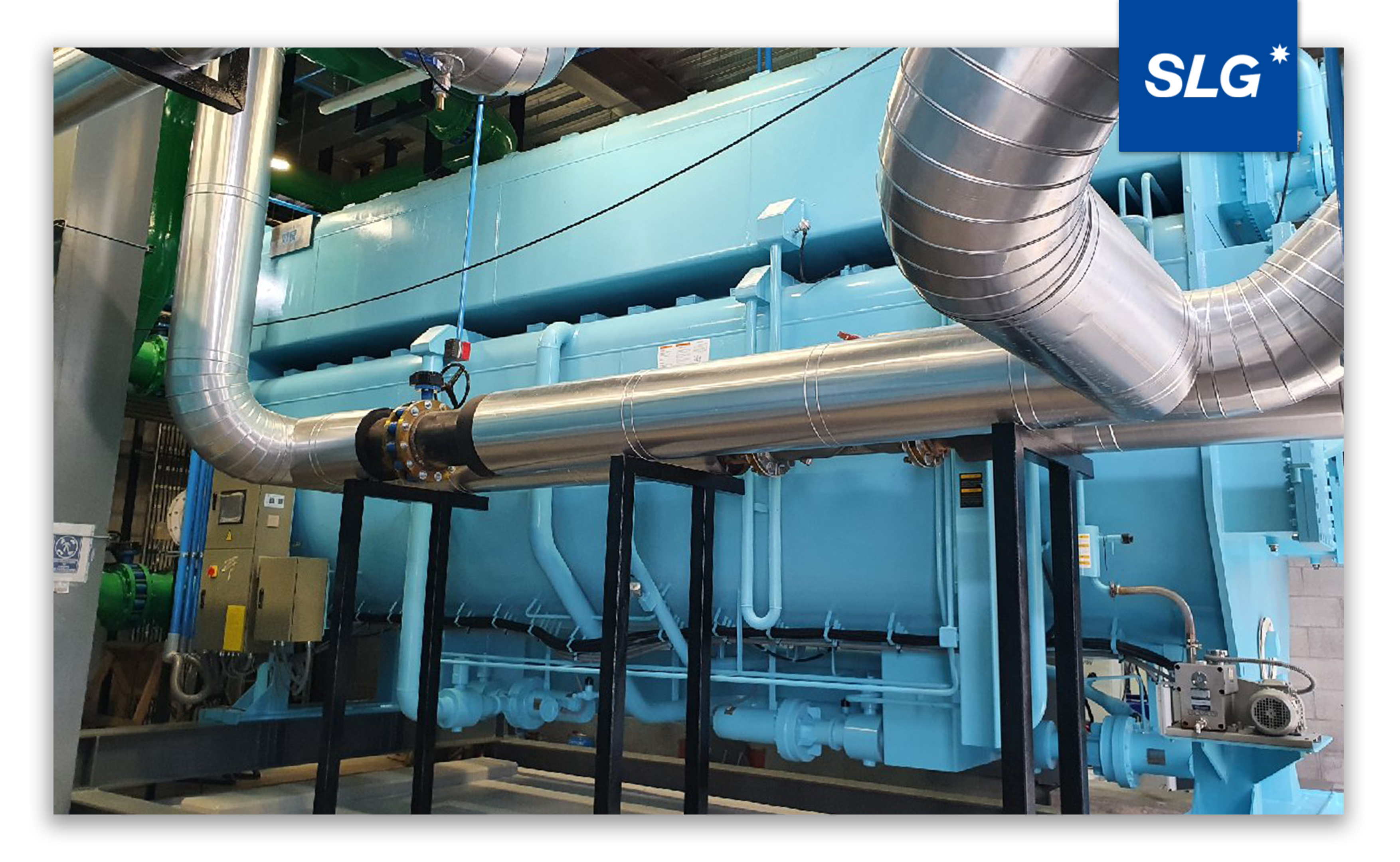 The system adopts gas internal combustion engine power generation. Through waste heat recovery, exhaust gas and jacket water heat are converted into hot water to drive SLG absorption chillers, enabling cascading energy utilization and significantly improving overall efficiency.